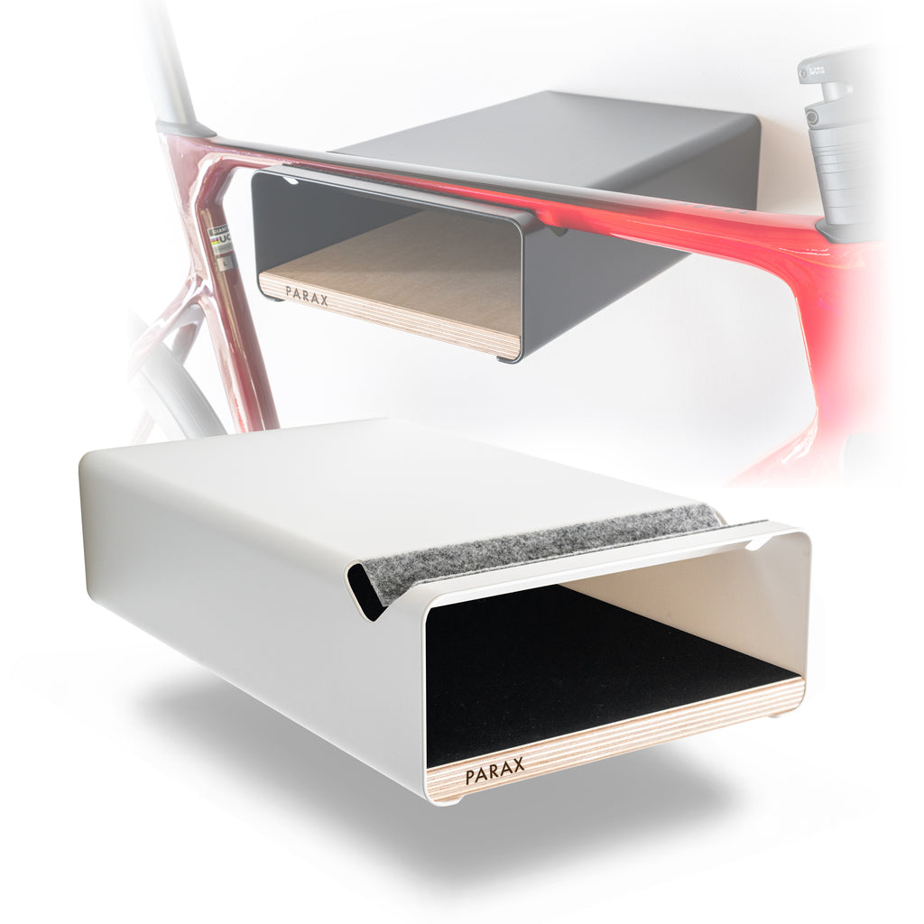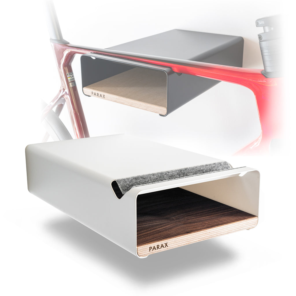Mit dem S-RACK kannst du dein Fahrrad endlich stilvoll und platzsparend aufhängen. Die Fahrrad Wandhalterung wird aus hochwertigen Materialien und zu 100% in Deutschland gefertigt. Das Einlegebrett aus Holz sorgt für zusätzlichen Stauraum auf der Fahrradhalterung, die Filzeinlage schützt den Rahmen vor Kratzern. Wähle aus 8 verschiedenen Varianten und zwei Größen. So kannst du dir die Wandhalterung für dein Fahrrad konfigurieren, die am besten zu dir und deiner Wohnung passt.
